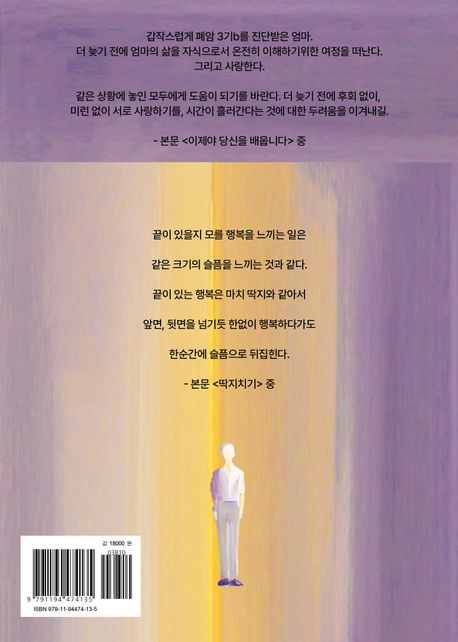 독자들에게도 유한한 시간 속에서 후회 없는 사랑을 실천할 용기를 건네는 가장 솔직하고 감동적인 가족성장에세이이며,